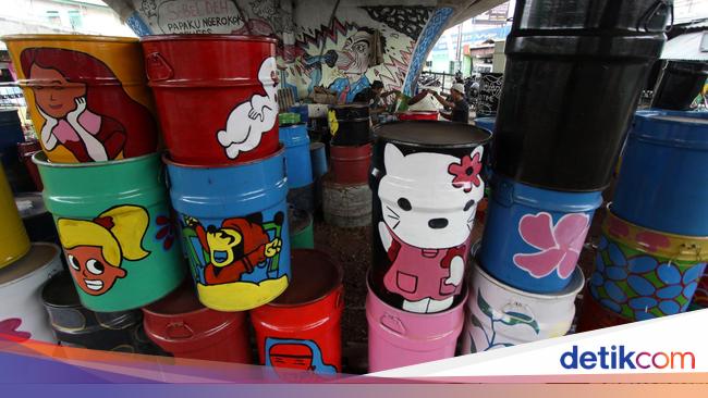 Foto Kreasi Pengrajin Lukis Tong Sampah Dengan Gambar Kartun Menarik Merdeka Com